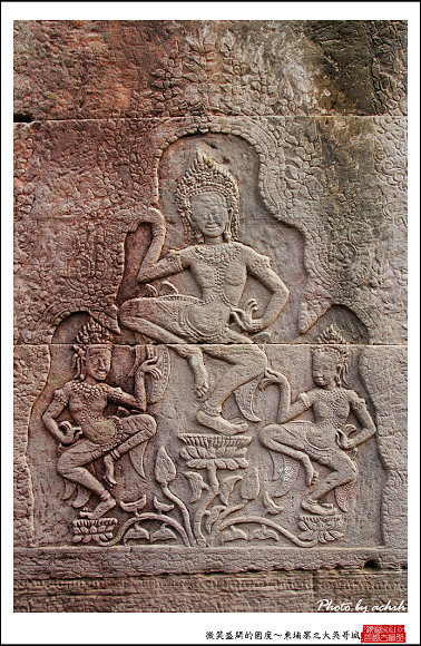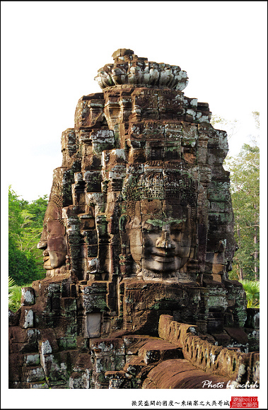 首先在南城門印入眼簾的是在上篇和大家分享的印度故事~如海翻騰,以面對城門的方向望去,左邊是天神右邊是阿修羅,這也是我參訪吳哥古蹟中,保存最為完善的乳海翻騰的石像。穿越南城門之後再轉搭小型巴士不久,來到吳哥城最為著名景點之一~巴戎寺。